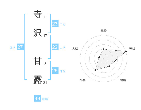 寺沢 甘露さんの天格は23画の5点!