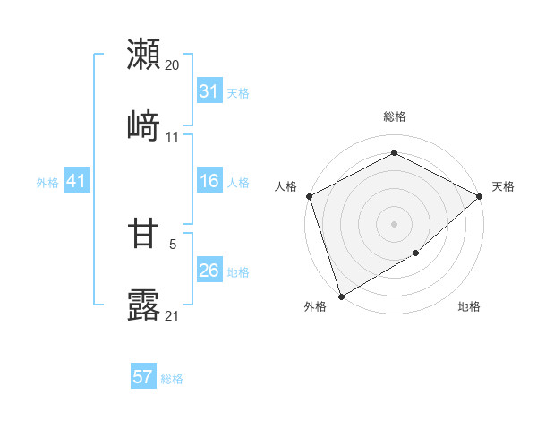 瀬﨑 甘露さんの天格は31画の5点!