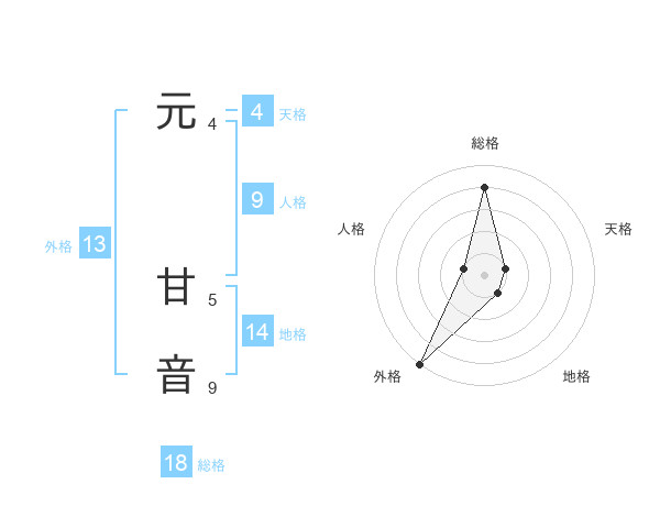 元 甘音さんの総格は18画の4点!