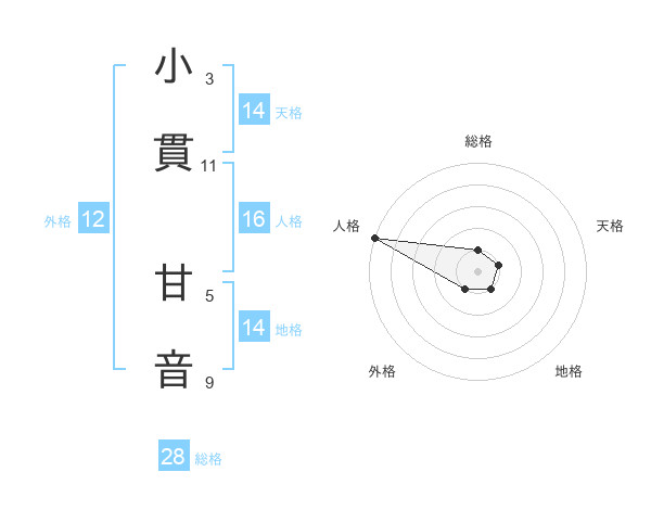 小貫 甘音さんを姓名の画数から五運を鑑定