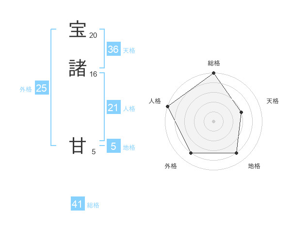 宝諸 甘さんの総格は41画の5点!