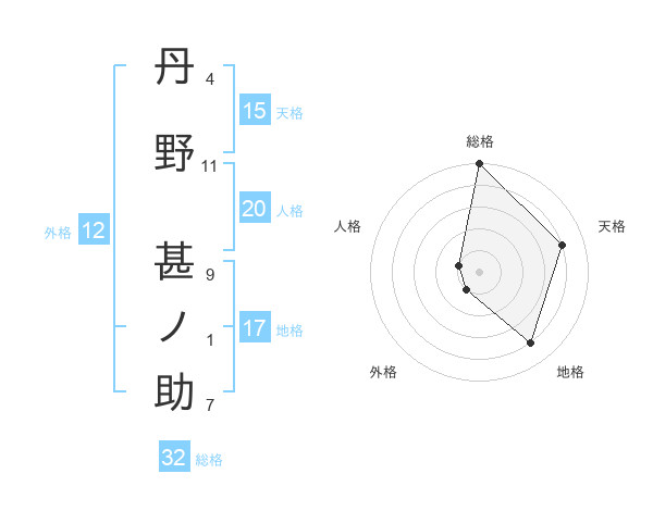 丹野 甚ノ助さんを姓名の画数から五運を鑑定