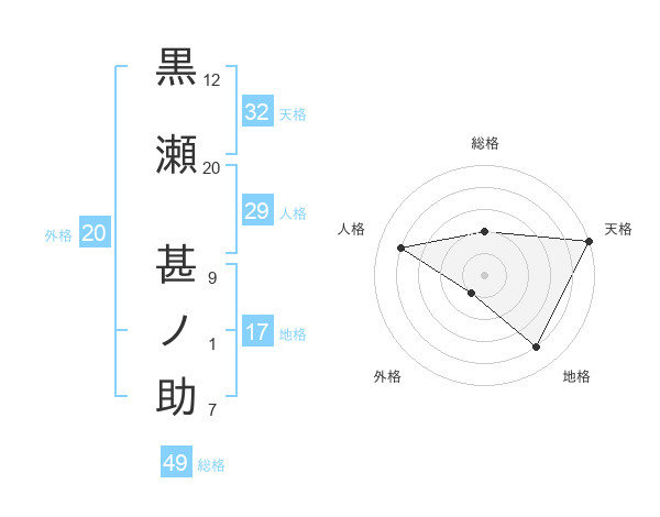 黒瀬 甚ノ助さんの天格は32画の5点!