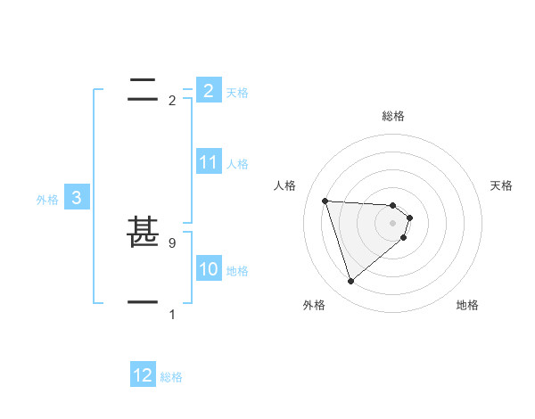 二 甚一さんの総格は12画の1点!