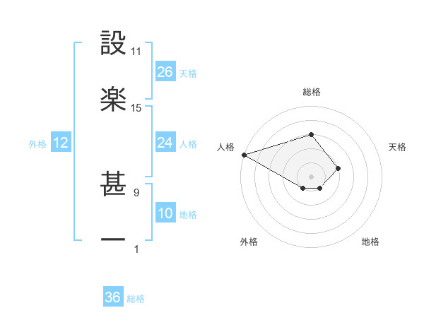 設楽 甚一さんの天格は26画の2点!