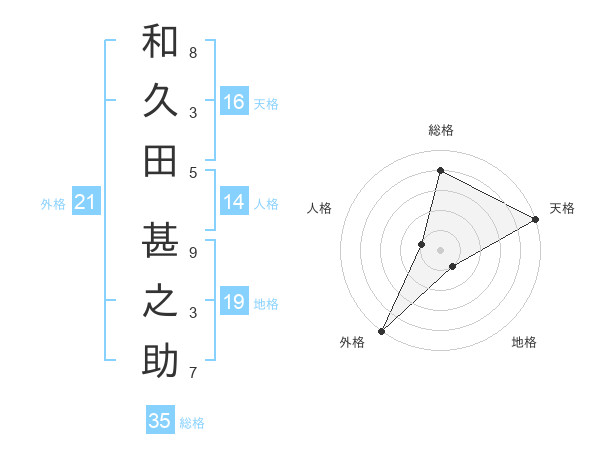 和久田 甚之助さんの外格は21画の5点!