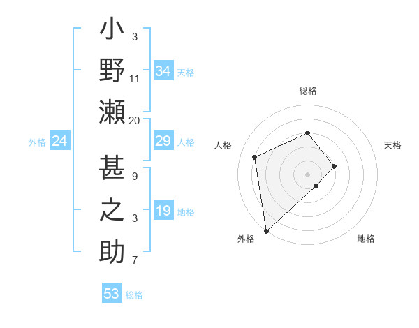 小野瀬 甚之助さんを姓名の画数から五運を鑑定