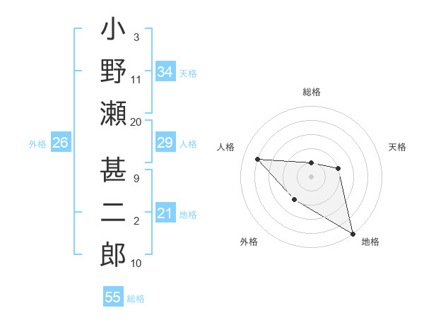 小野瀬 甚二郎さんを姓名の画数から五運を鑑定