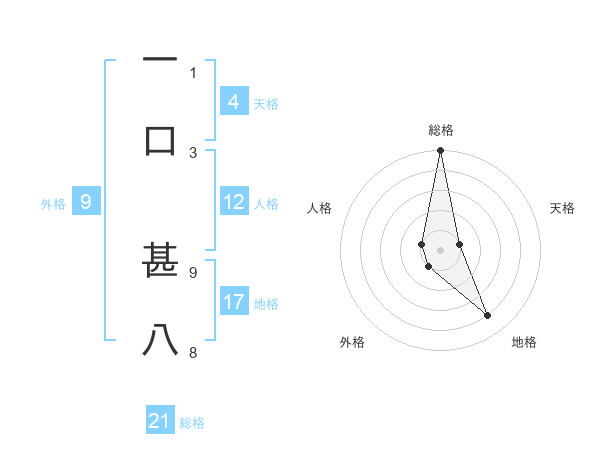 一口 甚八さんの総格は21画の5点!