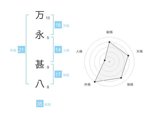 万永 甚八さんを姓名の画数から五運を鑑定