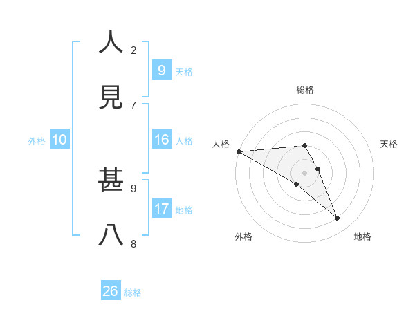 人見 甚八さんの総格は26画の2点!