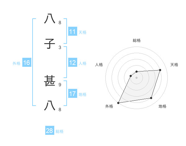 八子 甚八さんの総格は28画の1点!