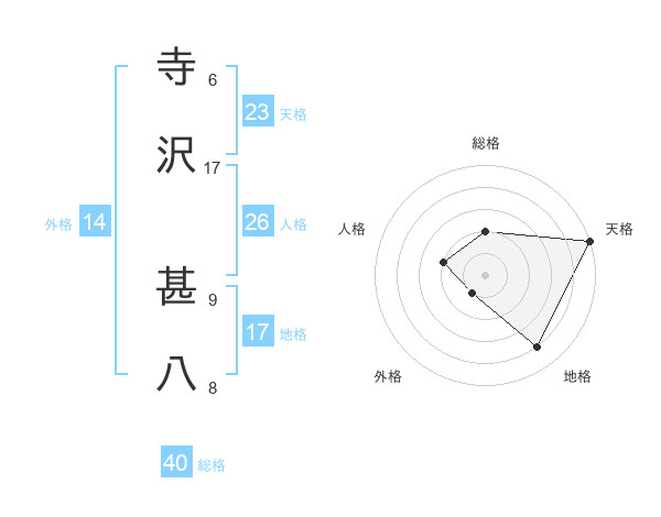 寺沢 甚八さんの天格は23画の5点!