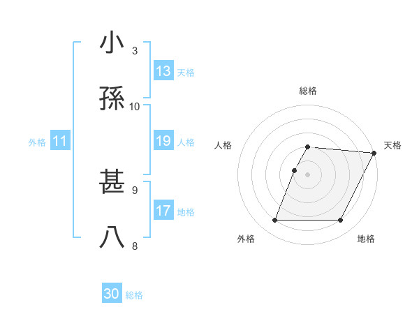 小孫 甚八さんの天格は13画の5点!