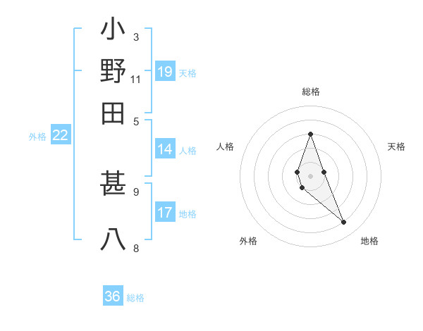 小野田 甚八さんの天格は19画の1点!
