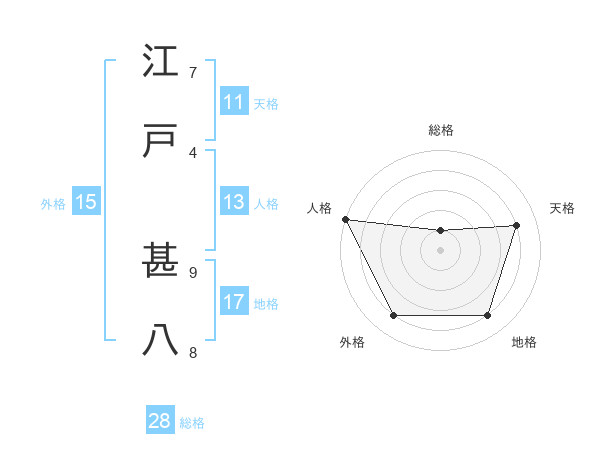 江戸 甚八さんを姓名の画数から五運を鑑定