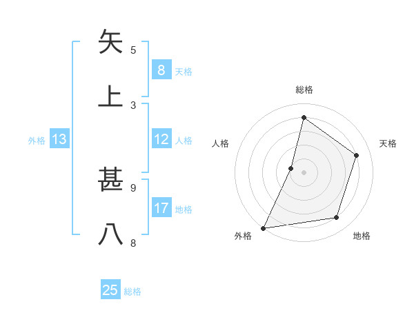 矢上 甚八さんの外格は13画の5点!