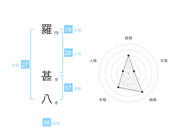 羅 甚八さんの外格は27画の3点!