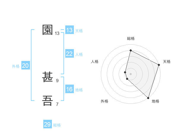 園 甚吾さんの総格は29画の4点!
