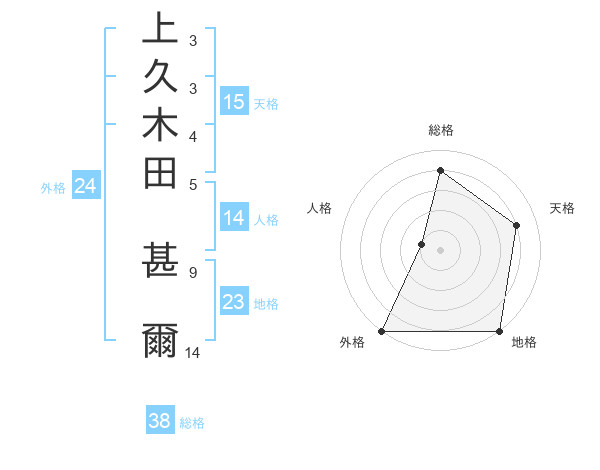 上久木田 甚爾さんを姓名の画数から五運を鑑定