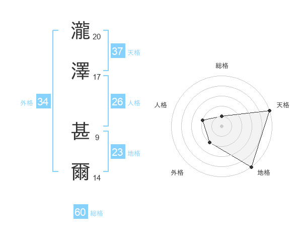 瀧澤 甚爾さんを姓名の画数から五運を鑑定