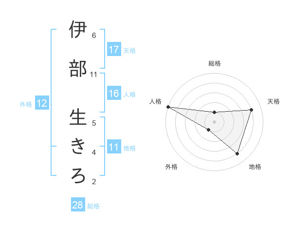 伊部 生きろさんの天格は17画の4点!
