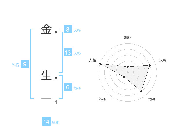金 生一さんの天格は8画の4点!