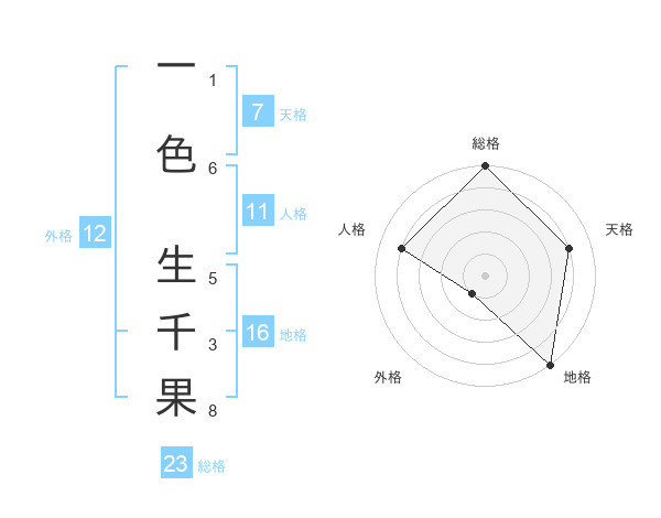 一色 生千果さんの地格は16画の5点!
