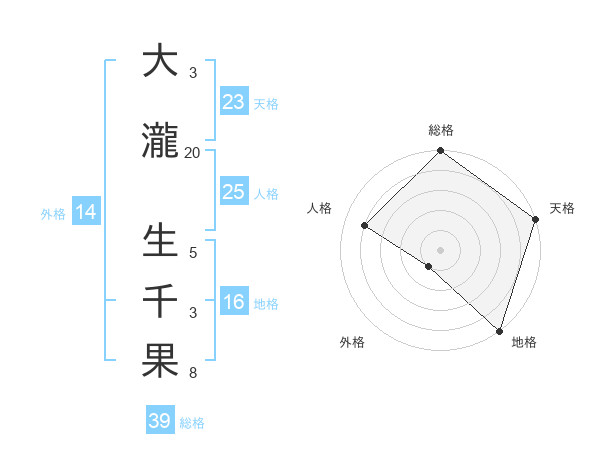大瀧 生千果さんの総格は39画の5点!