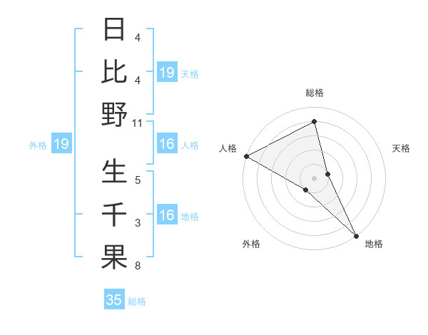 日比野 生千果さんを姓名の画数から五運を鑑定