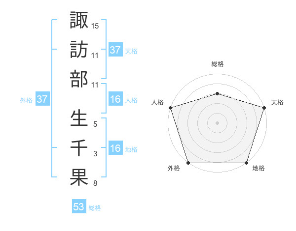 諏訪部 生千果さんの外格は37画の5点!