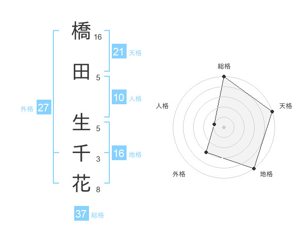 橋田 生千花さんの総格は37画の5点