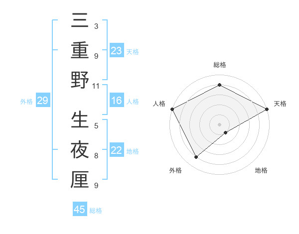 三重野 生夜厘さんを姓名の画数から五運を鑑定