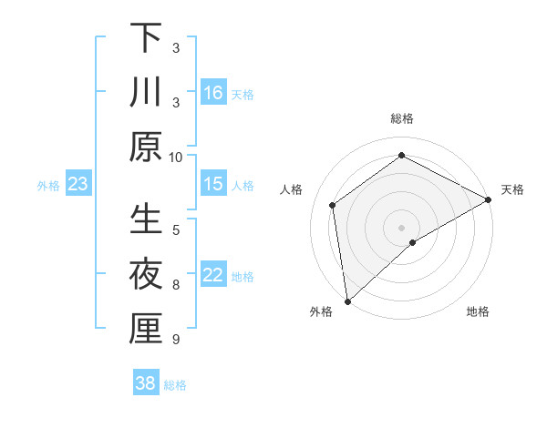 下川原 生夜厘さんの総格は38画の4点!