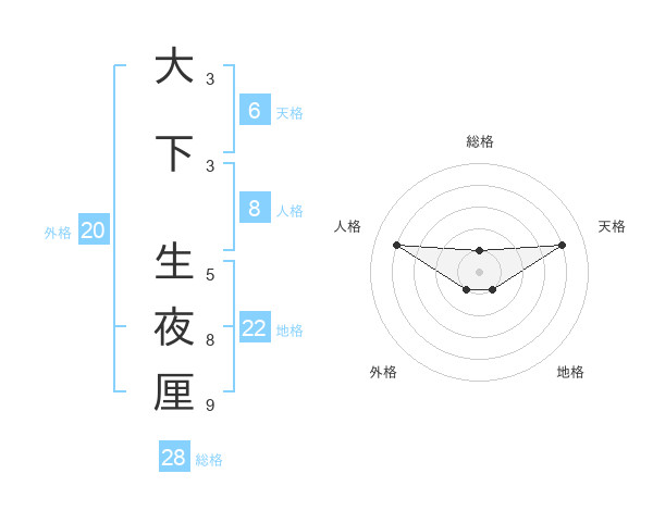 大下 生夜厘さんを姓名の画数から五運を鑑定