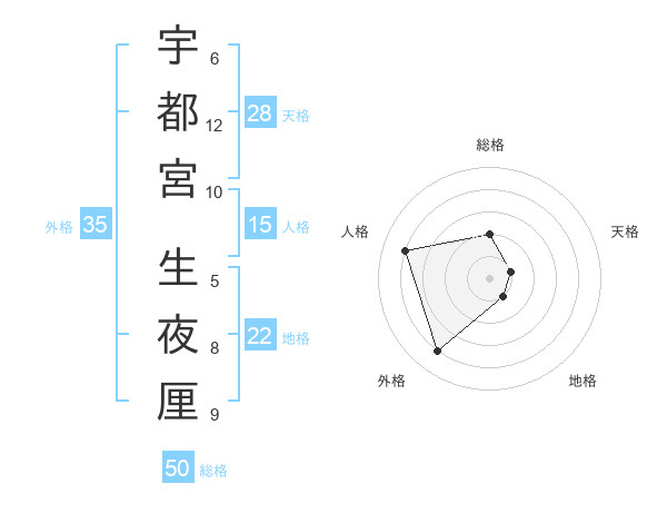 宇都宮 生夜厘さんの総格は50画の2点!
