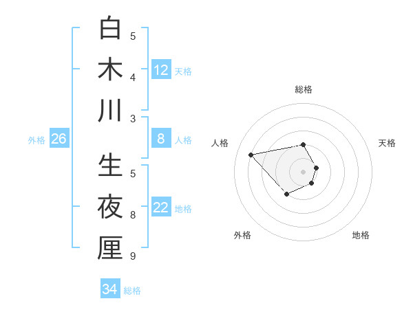 白木川 生夜厘さんを姓名の画数から五運を鑑定