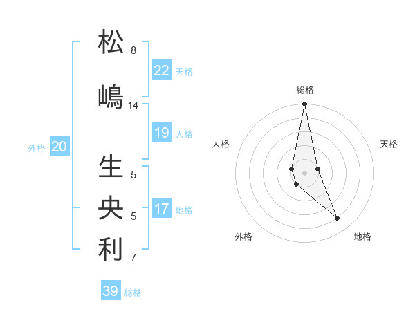 松嶋 生央利さんを姓名の画数から五運を鑑定