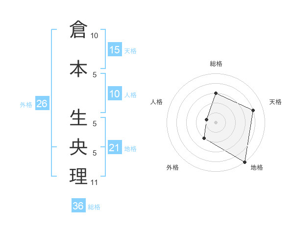 倉本 生央理さんの地格は21画の5点!
