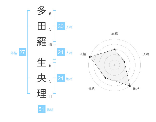 多田羅 生央理さんを姓名の画数から五運を鑑定
