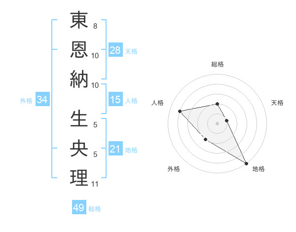 東恩納 生央理さんを姓名の画数から五運を鑑定