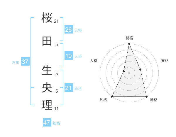 桜田 生央理さんの外格は37画の5点!