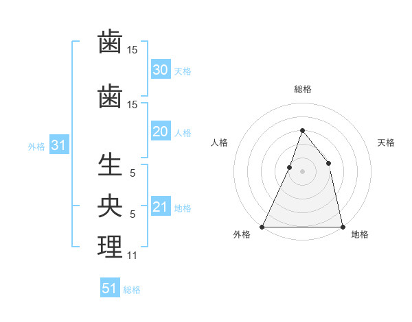 歯歯 生央理さんの総格は51画の3点!