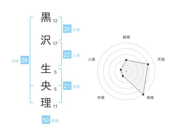 黒沢 生央理さんを姓名の画数から五運を鑑定