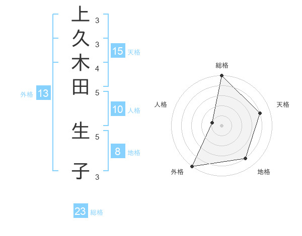上久木田 生子さんを姓名の画数から五運を鑑定