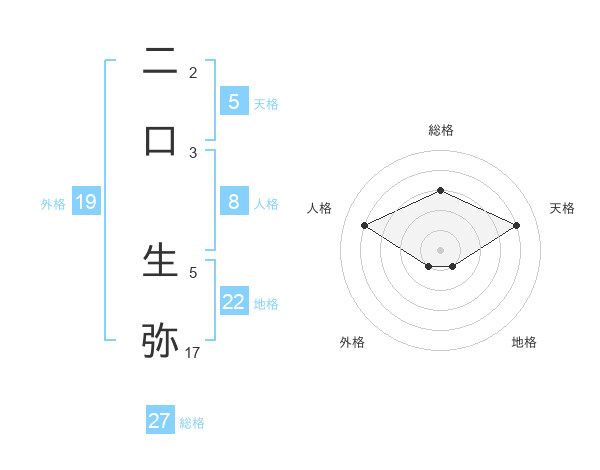 二口 生弥さんを姓名の画数から五運を鑑定