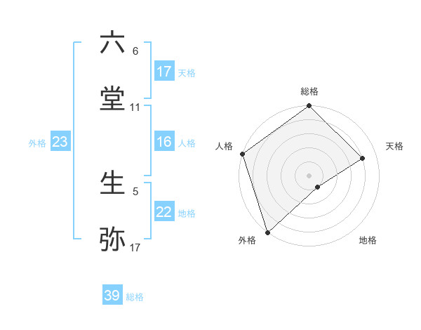 六堂 生弥さんの総格は39画の5点!