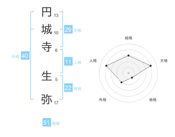 円城寺 生弥さんを姓名の画数から五運を鑑定