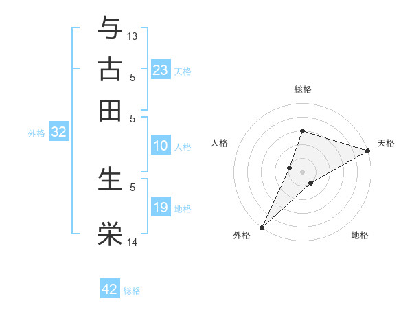 与古田 生栄さんを姓名の画数から五運を鑑定