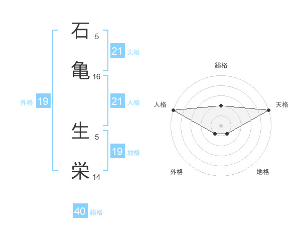 石亀 生栄さんの天格は21画の5点!